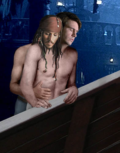 Another aspect of this choice is the expression. Even if the three technical aspects fit, if the expression doesn't, your manip won't work as you want it to. Here you have to think again: What is it that you want to show? Tenderness? Pleasure? Long-suffering annoyance? Such shots can be taken out of context. For example, the classical "orgasm" shots usually are from quite different scenes in films. Ironically enough, a scream of pain often is a good guess. You thought POTC wasn't a naughty movie? Let me prove you wrong.