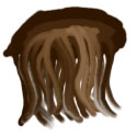 The less obvious form of linking is overlapping. This is what I mentioned before. Give things a three-dimensional order. The more complicated this "hierarchy" is, the more realistic your picture will likely look. Here, it seemed obvious to me that Jack's hair would fall forward across James' chest. Therefore (again on a layer of its own), I added hair. The longer hair is, the more it curls. And there are different types of hair. If, for example, you study Jack's hair, you will see that he has dreadlocks, woven braids of various thickness as well as hair hanging loose. He wears one long lock that reaches to his waist (the one with the red ribbon and the coin) Not all hair is the same length, same thickness or curliness. Try to imitate that. This does not mean looking where each single strand should go, but getting a general impression and trying to imitate it. It also requires different shades. For this, you will have to apply a certain understanding of light; and the hair itself. Thin hair has finer highlights. Hair with strongly contrasted, thick strands will appear wet. My personal favourite technique for drawing hair involves making a huge blotch of various shades of colour, and then using the smudge tool at 95-100% to "pull out" strands. First with a larger brush, then growing smaller. Highlights may need to be added in the end. (This is a two minute demonstration. I also did the hair in Sea Men, which I'm very satisfied with, like this, only that I spent several hours and multiple attempts on James' hair until I was satisfied with the result)